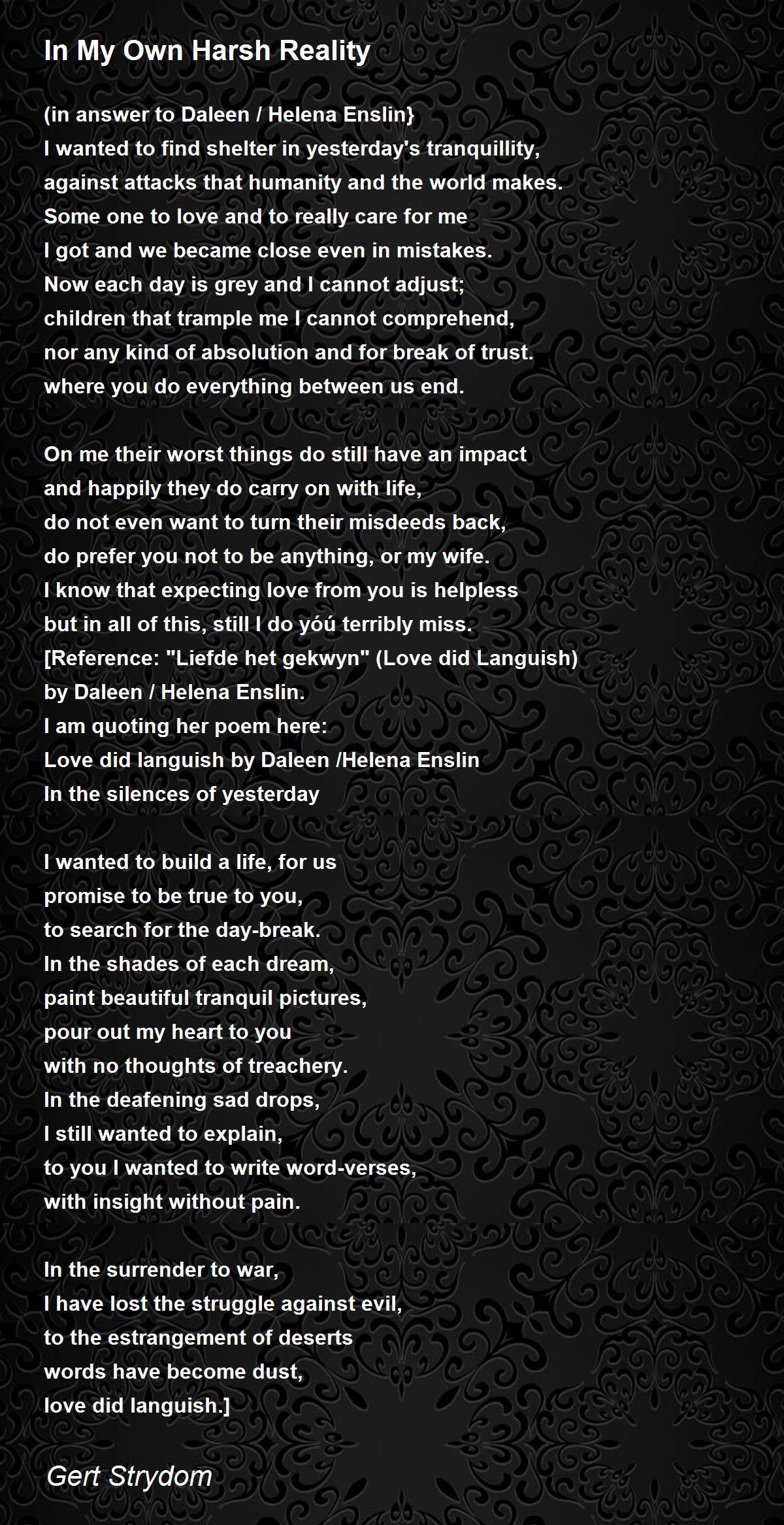 [Reference: "Liefde het gekwyn" (Love did Languish) by Daleen / Helena Enslin.
