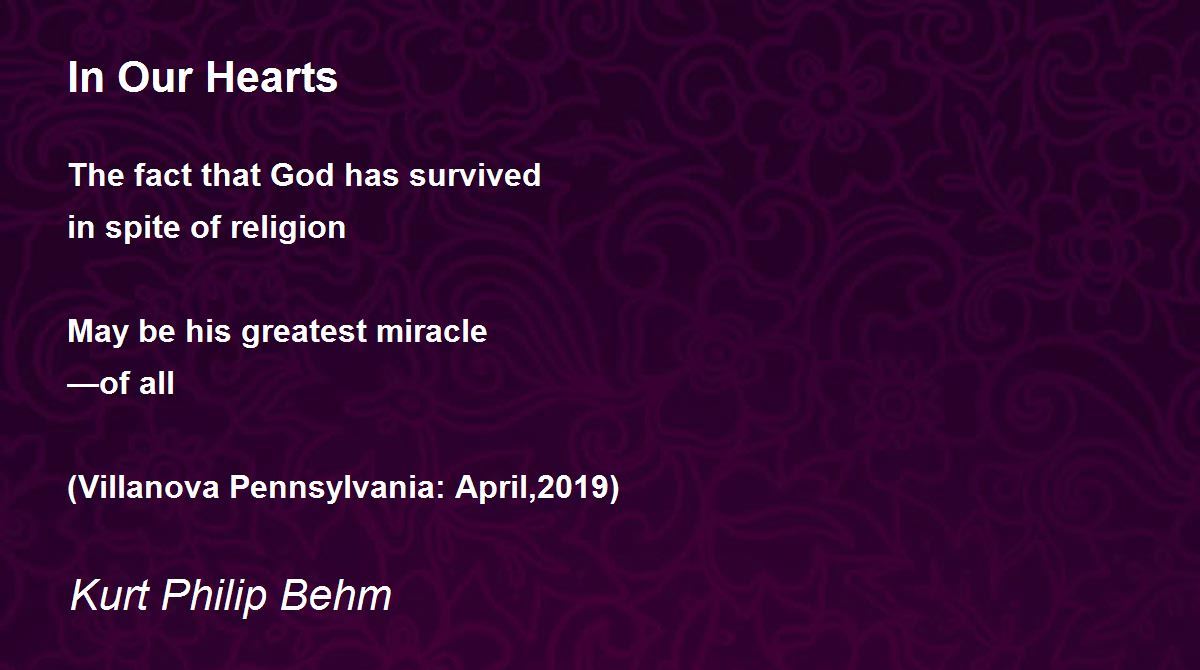 The fact that God has survived in spite of religion May be his greatest miracle —of all (Villanova Pennsylvania: April,2019)