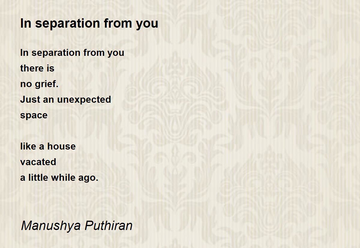 In separation from you there is no grief. Just an unexpected space like a house vacated a little while ago.