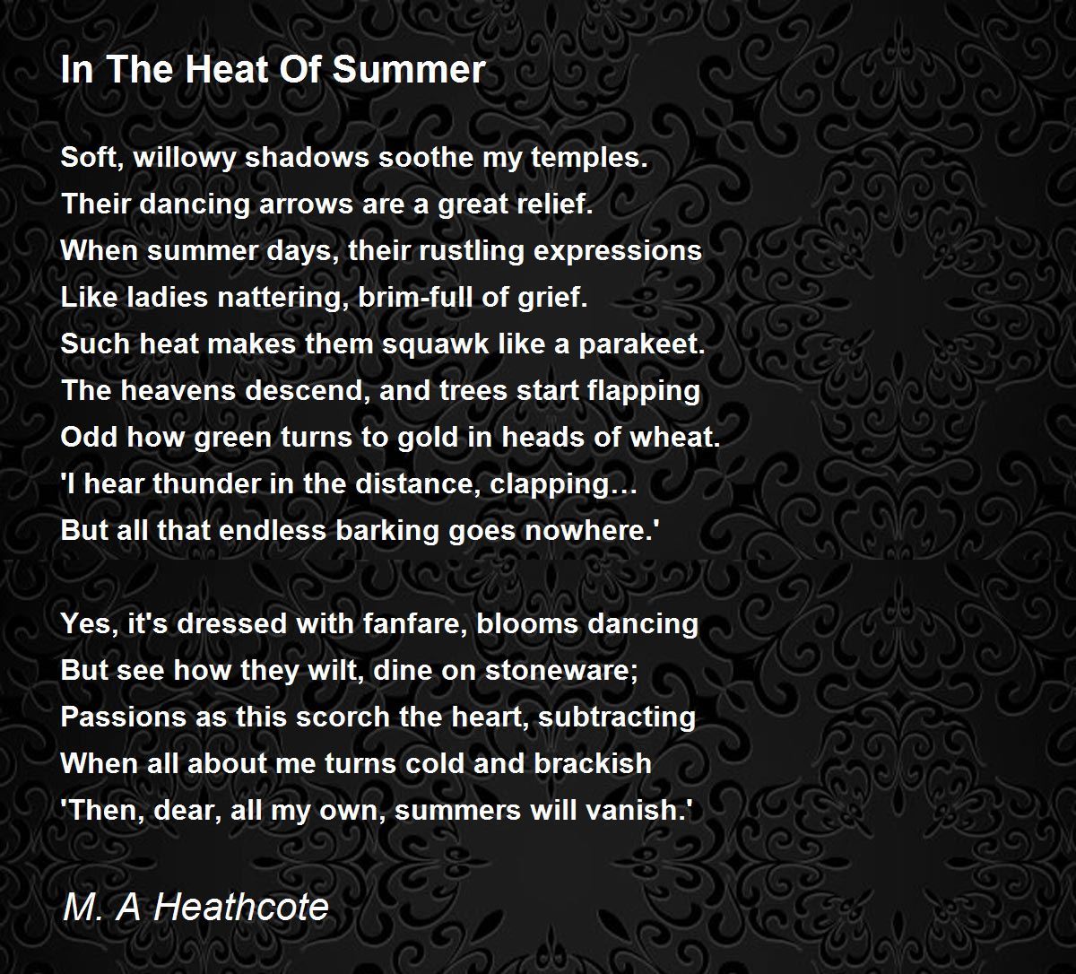 'Then, dear, all my own, summers will vanish.'