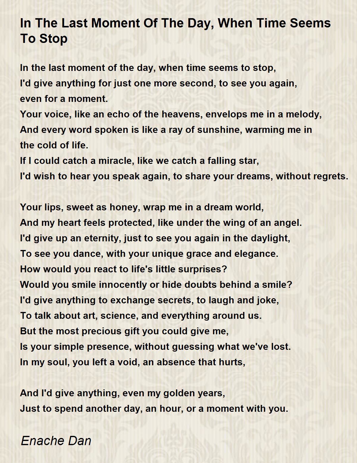 In the last moment of the day, when time seems to stop,