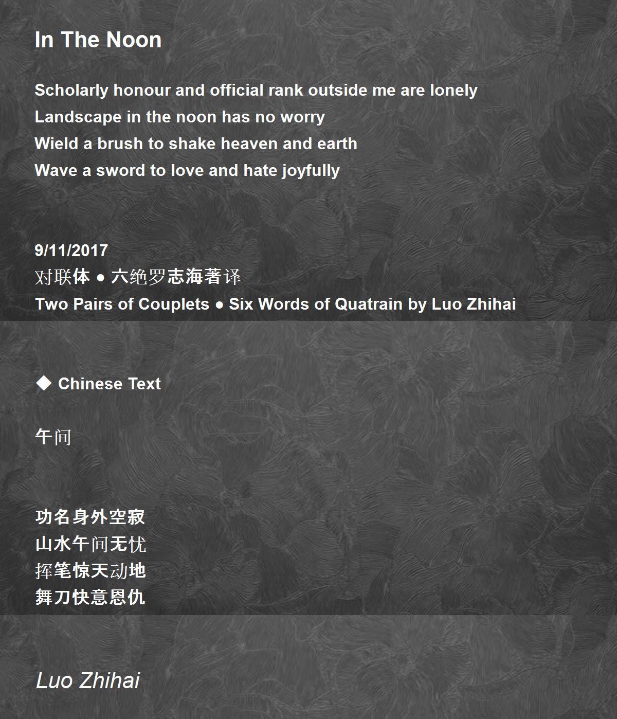 Two Pairs of Couplets ● Six Words of Quatrain by Luo Zhihai