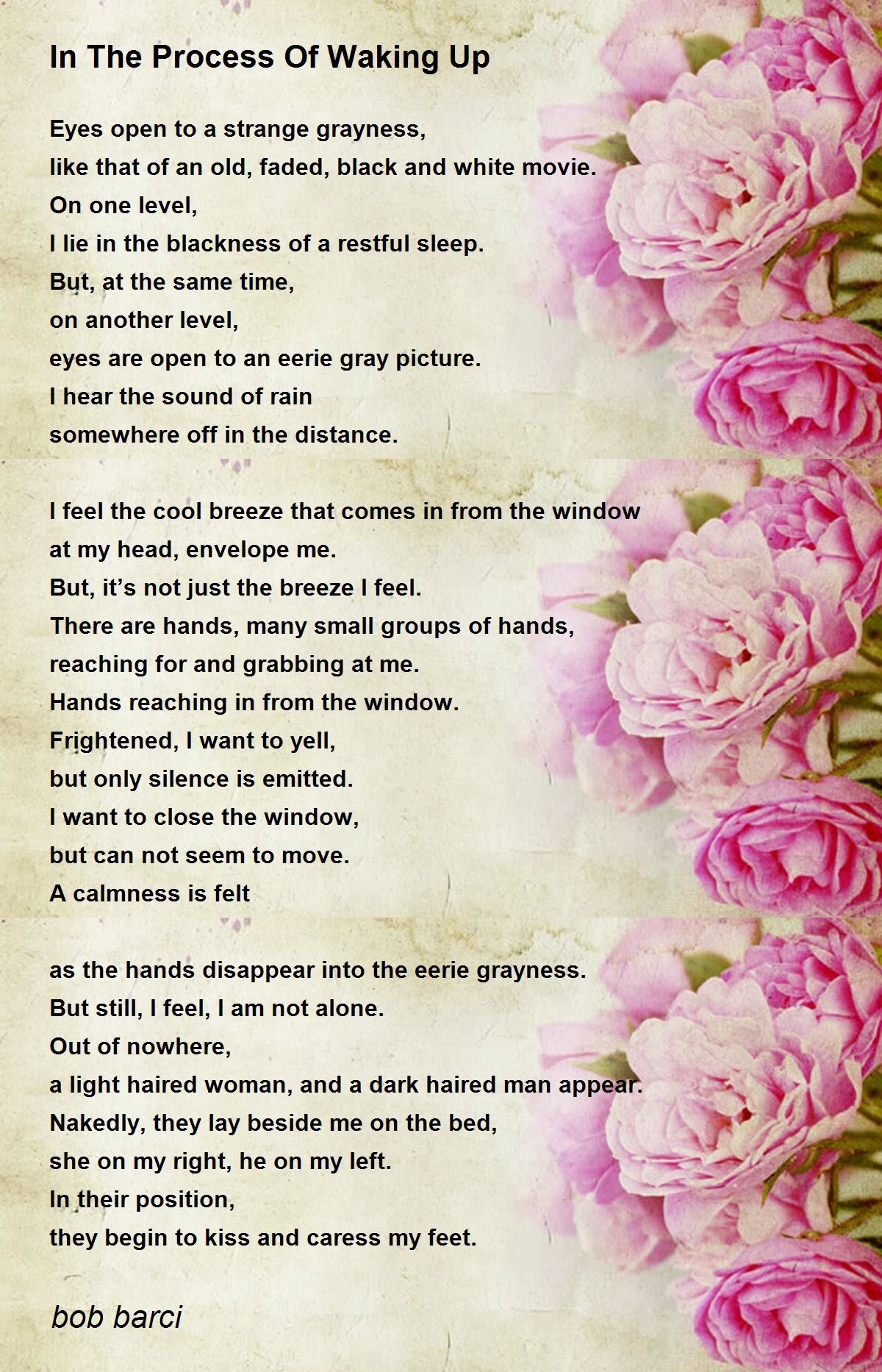 I lie in the blackness of a restful sleep.