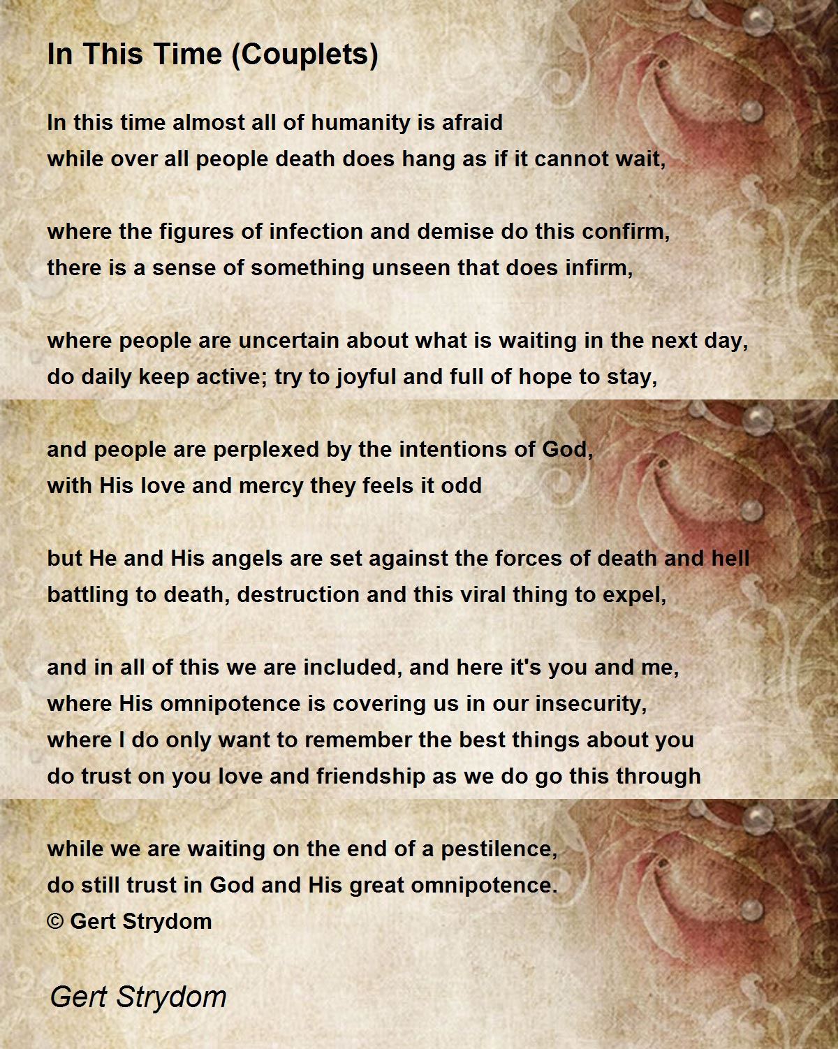 The first plague! ! ! The End in Focus! Coronavirus; Pandemic! ! Revelation Chapter 6. Thanks for sharing this poem with us.