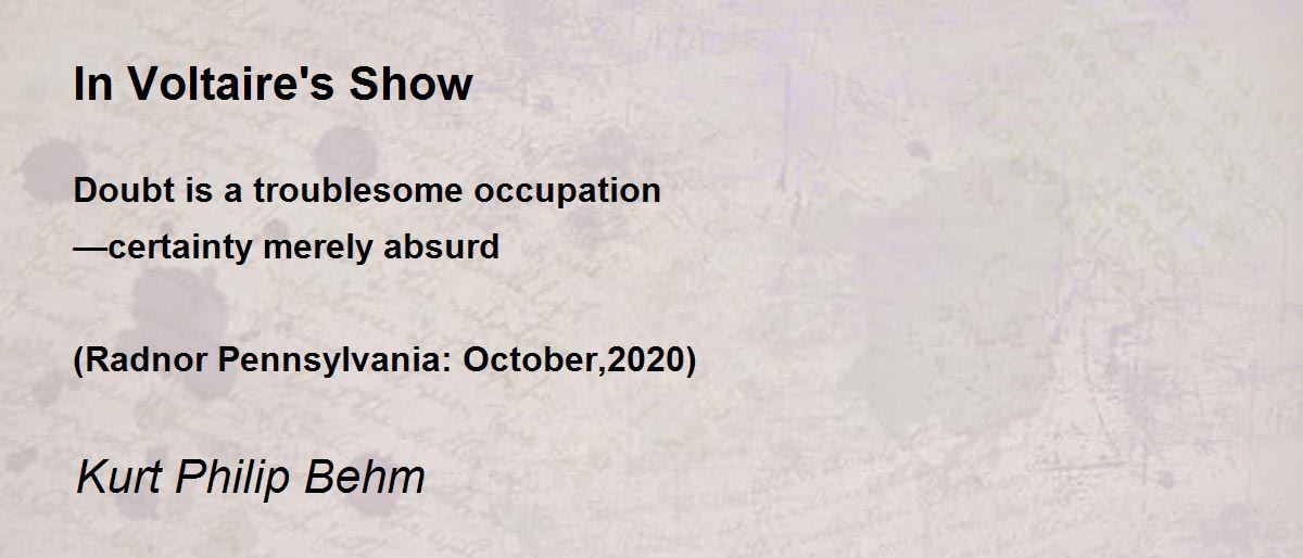 Doubt is a troublesome occupation —certainty merely absurd (Radnor Pennsylvania: October,2020)