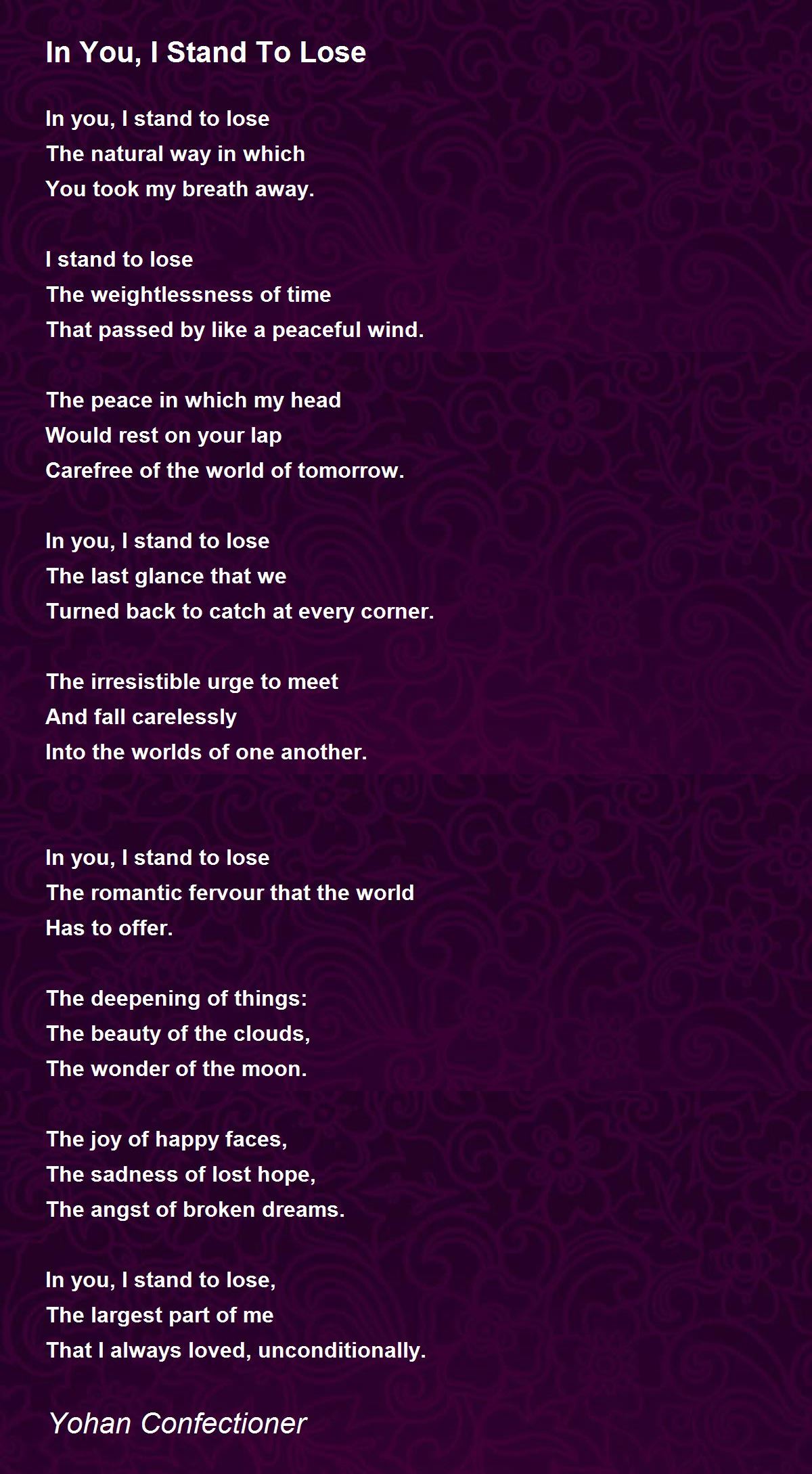 In you, I stand to lose,