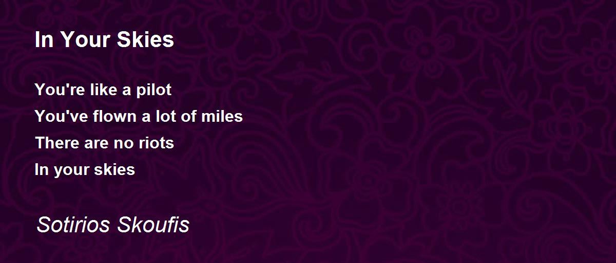 You're like a pilot You've flown a lot of miles There are no riots In your skies