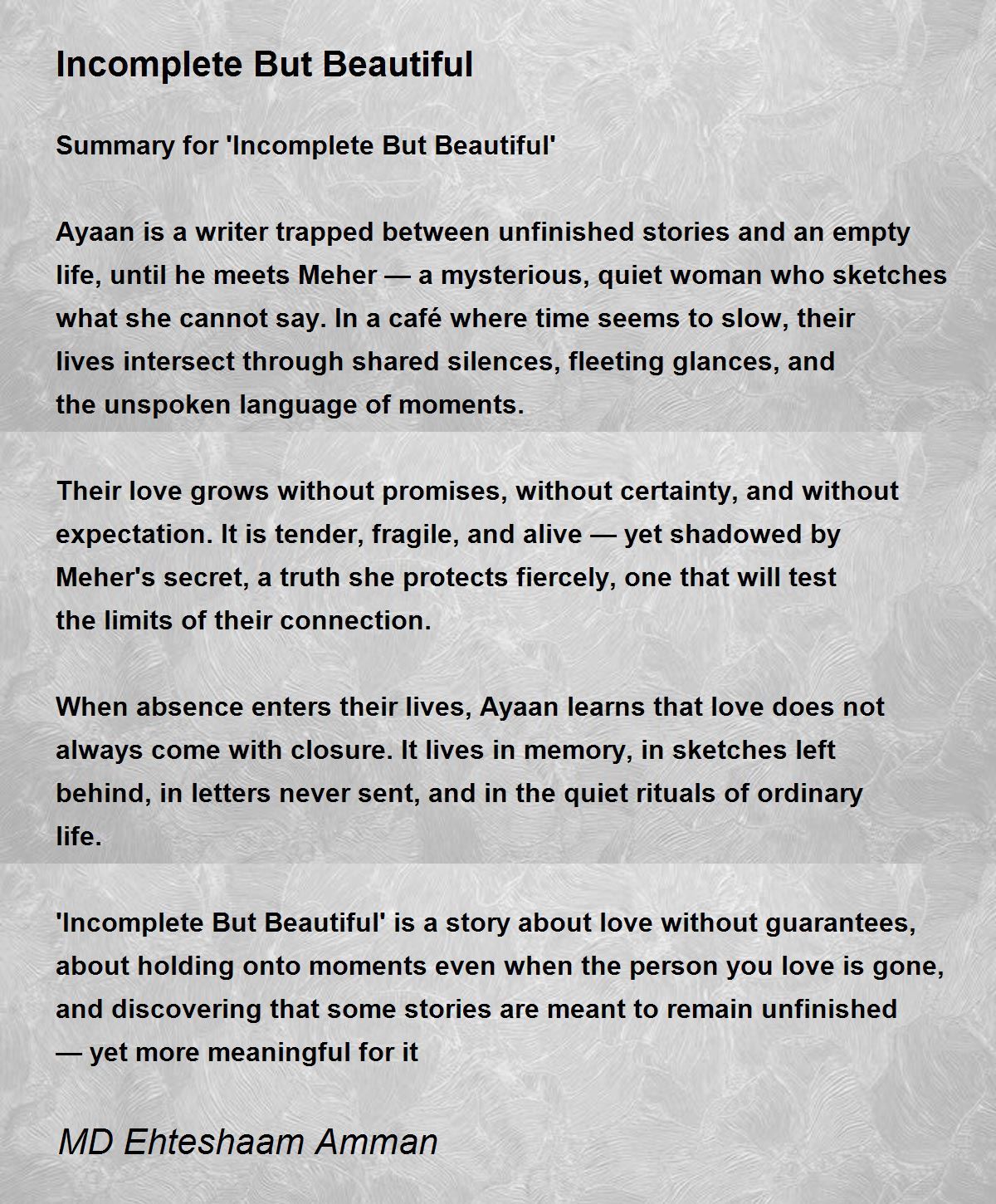 Summary for 'Incomplete But Beautiful'
