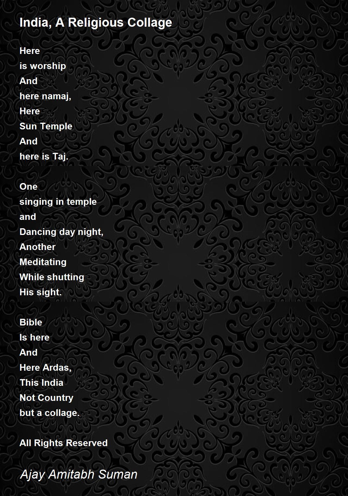 India (BHARAT) is a country of unity and freedom with diversity. Many beliefs reflect prayers but unity takes in one direction for love and peace. One God is father of all. India considers this world as a one family. This is a thoughtful poem shared here.10