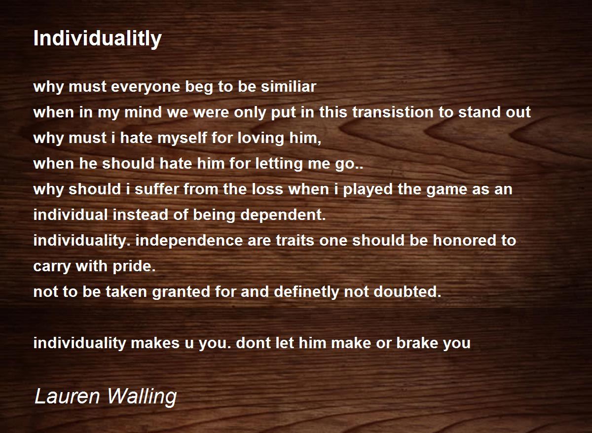 individuality. independence are traits one should be honored to carry with pride.