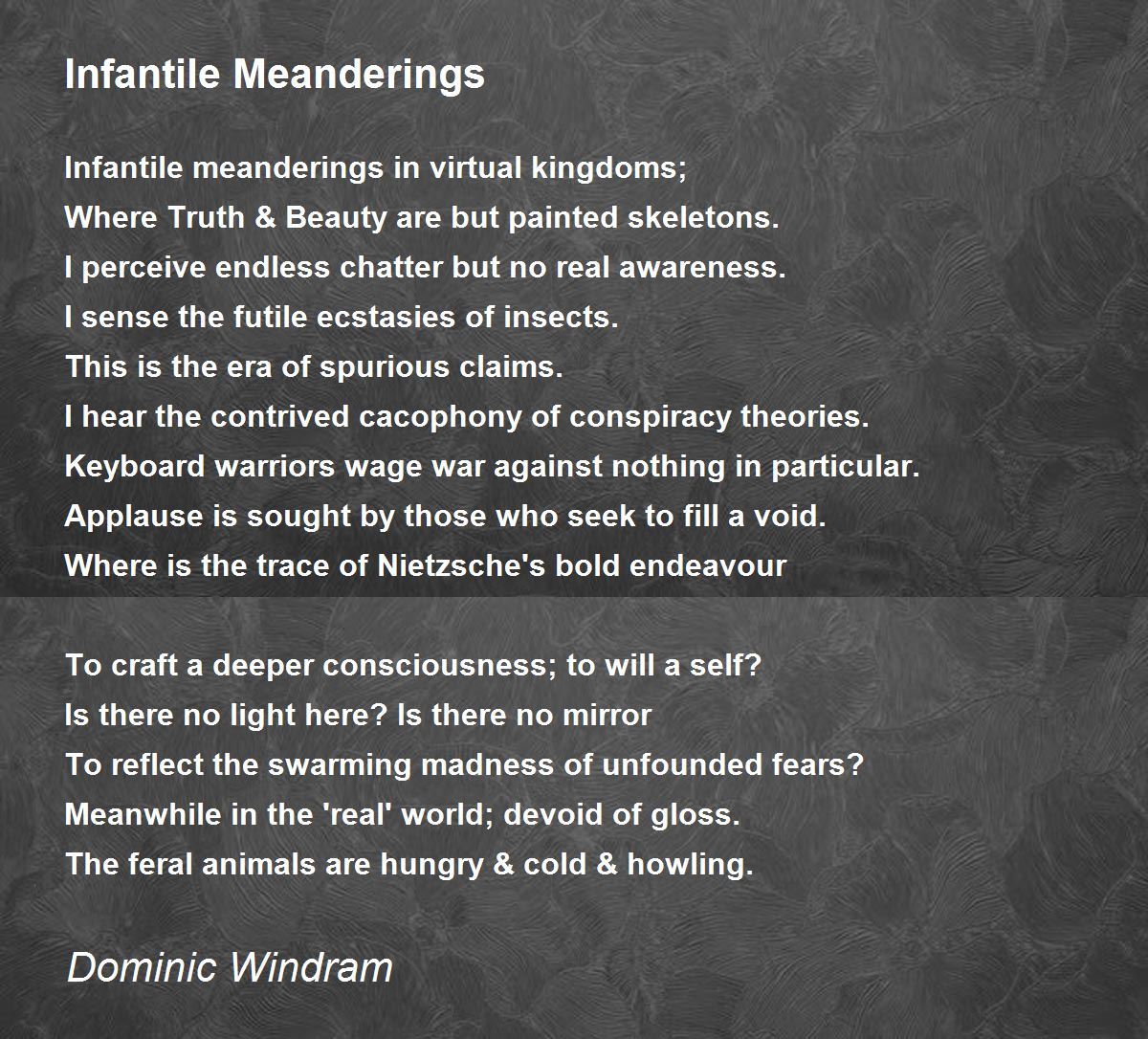 Infantile meanderings in virtual kingdoms;