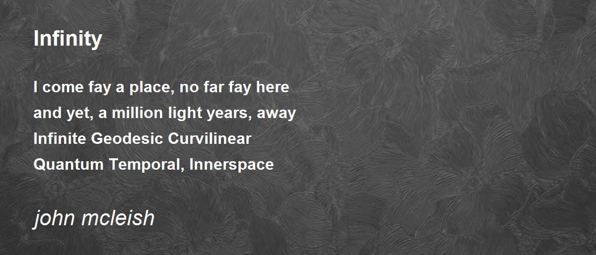 I come fay a place, no far fay here and yet, a million light years, away Infinite Geodesic Curvilinear Quantum Temporal, Innerspace