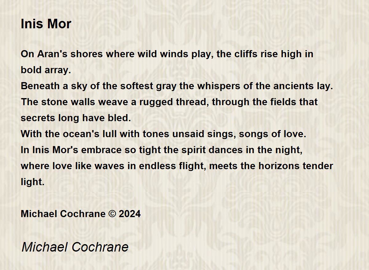 In Inis Mor's embrace so tight the spirit dances in the night, where love like waves in endless flight, meets the horizons tender light.