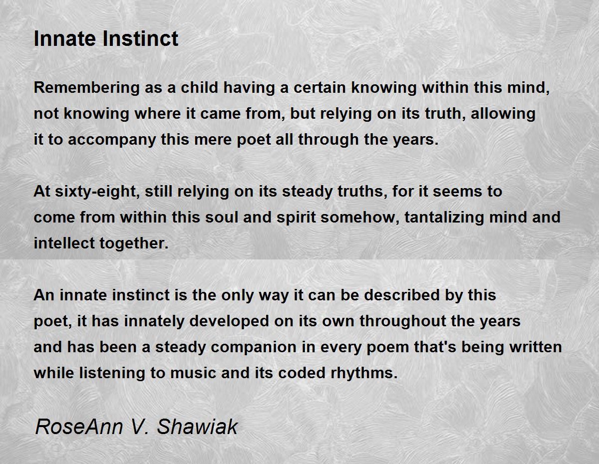 An innate instinct is the only way it can be described by this poet, it has innately developed on its own throughout the years and has been a steady companion in every poem that's being written while listening to music and its coded rhythms.