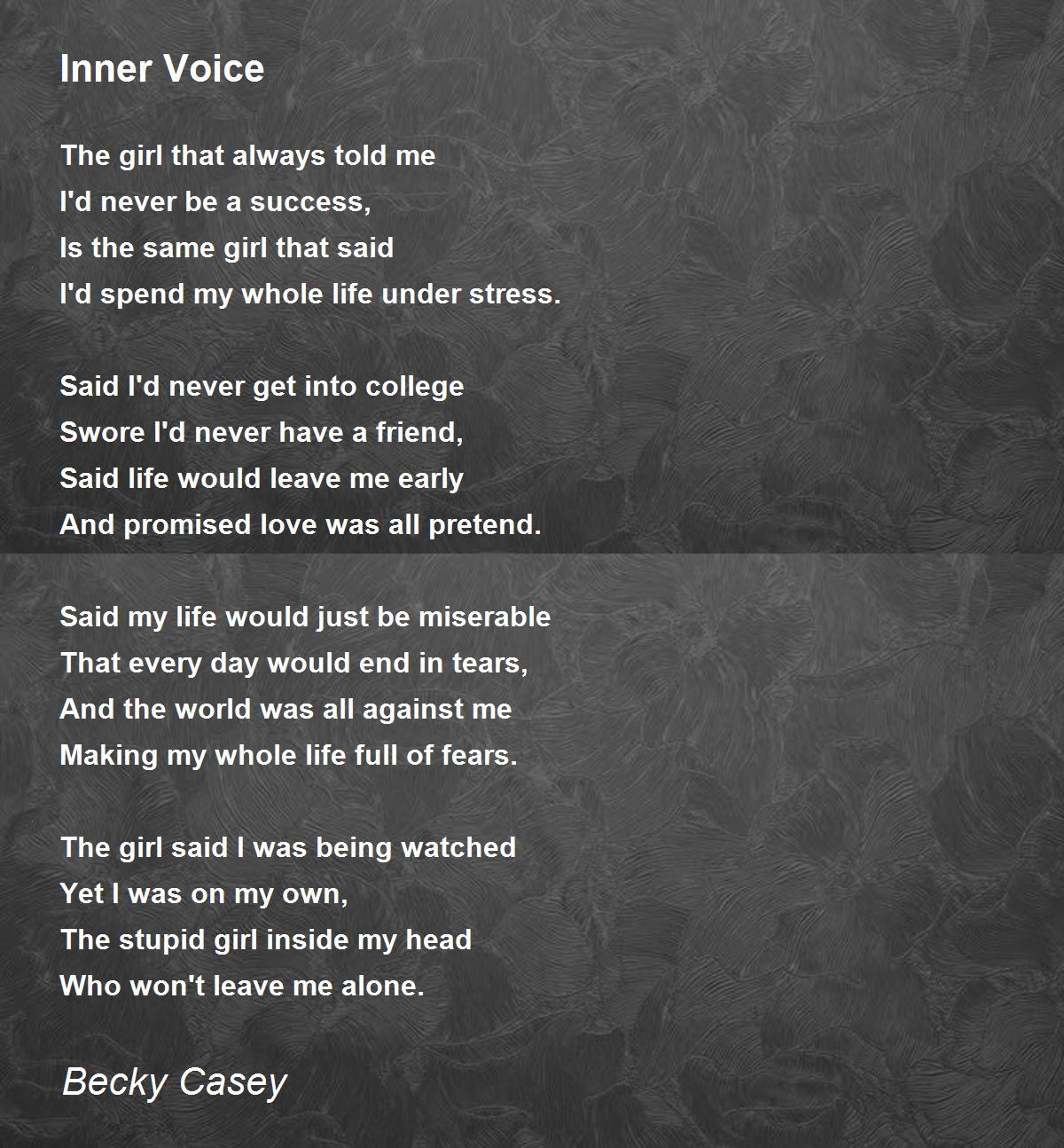 This is great write with amazing rhythm and flow, our inner voice can be so negative and destructive at times!