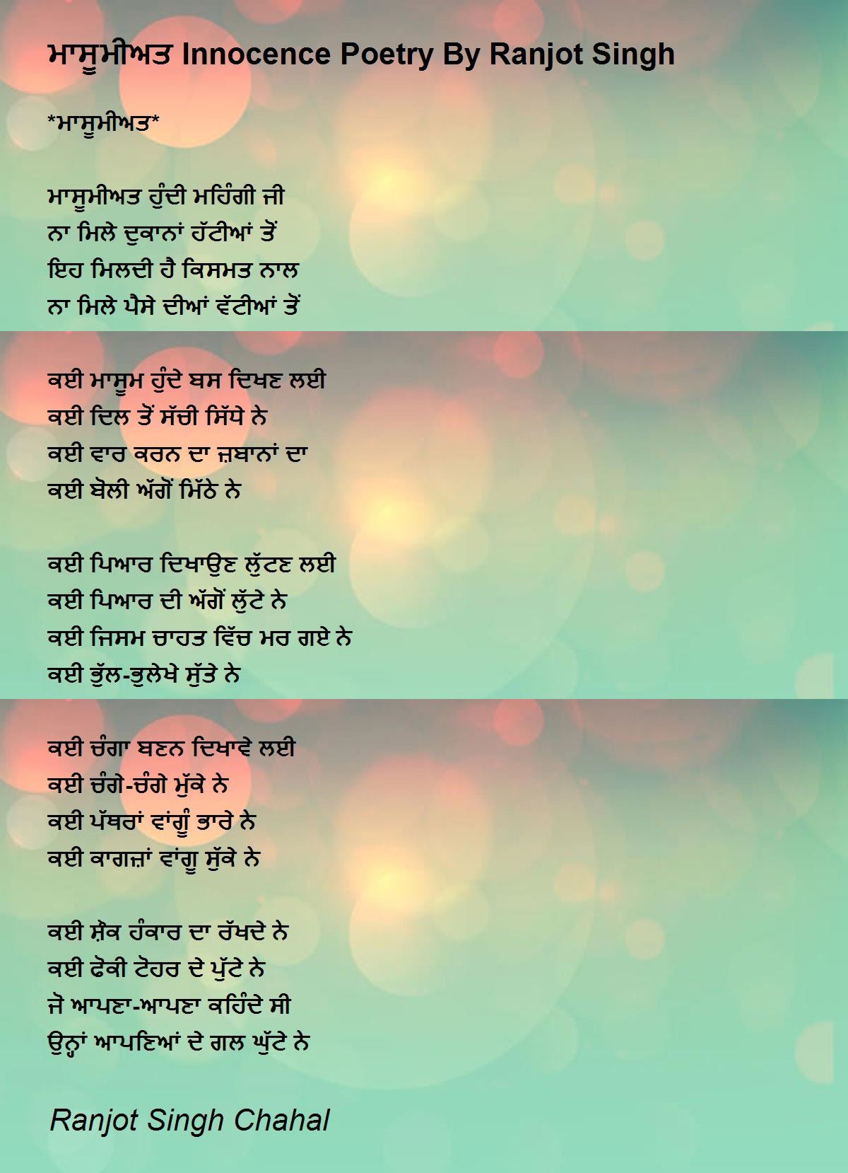 ਮਾਸੂਮੀਅਤ ਹੁੰਦੀ ਮਹਿੰਗੀ ਜੀ