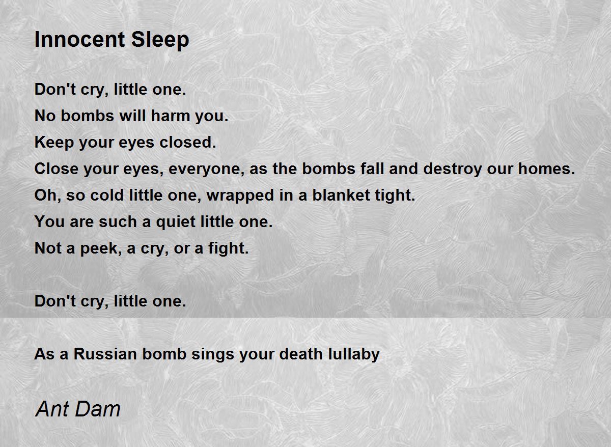 Close your eyes, everyone, as the bombs fall and destroy our homes.