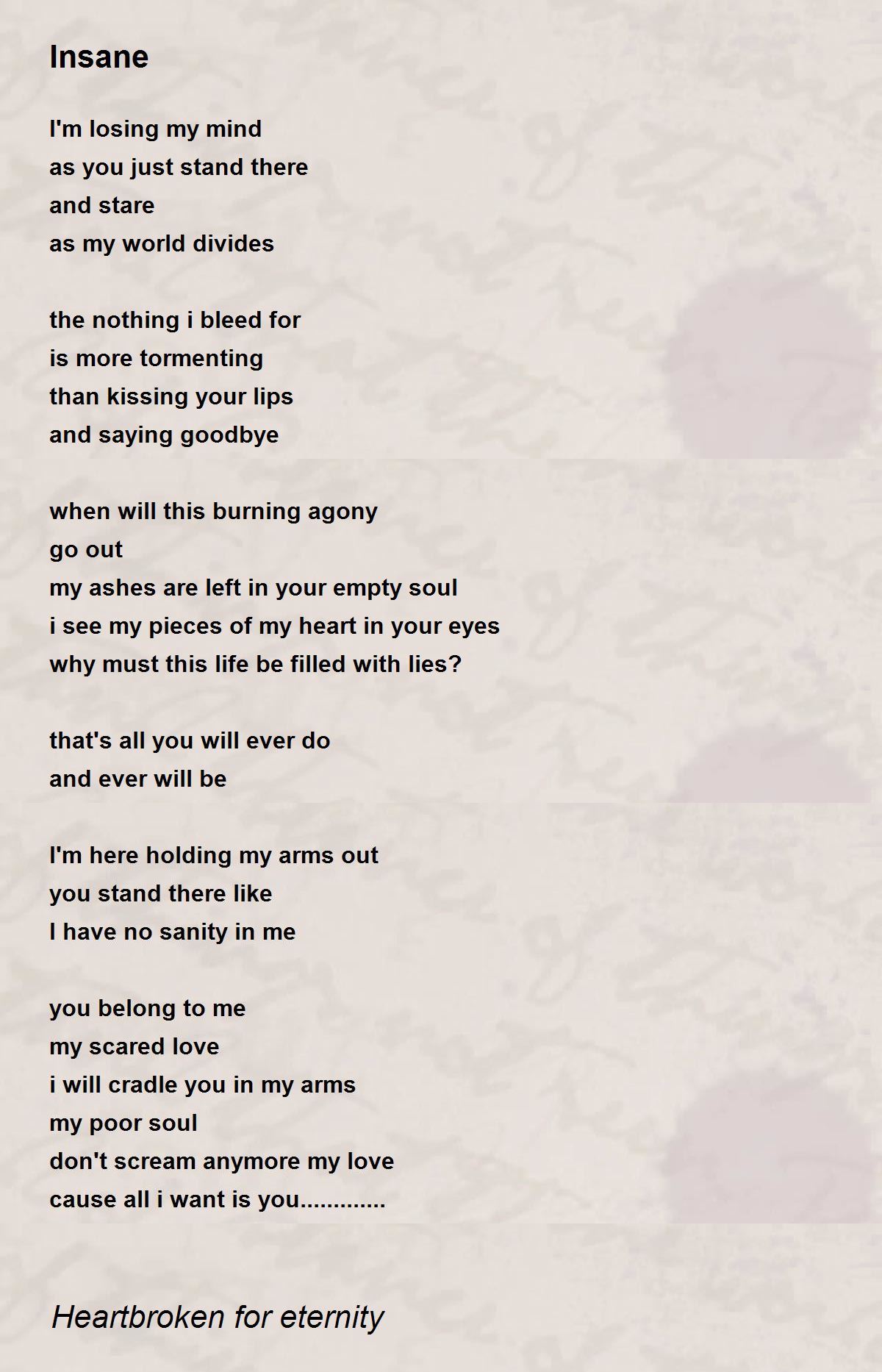 I have no sanity in me