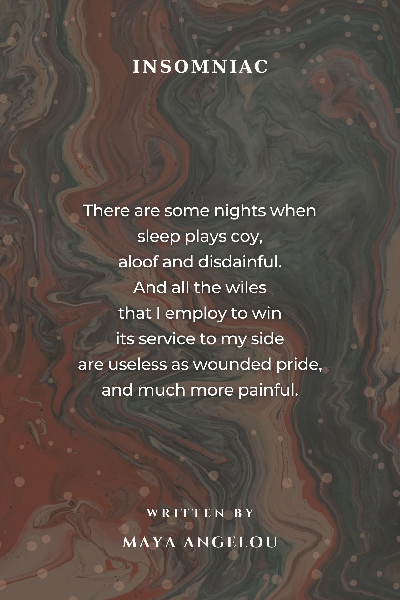 There are some nights when sleep plays coy, aloof and disdainful. Wounded pride and it is very painful. tony