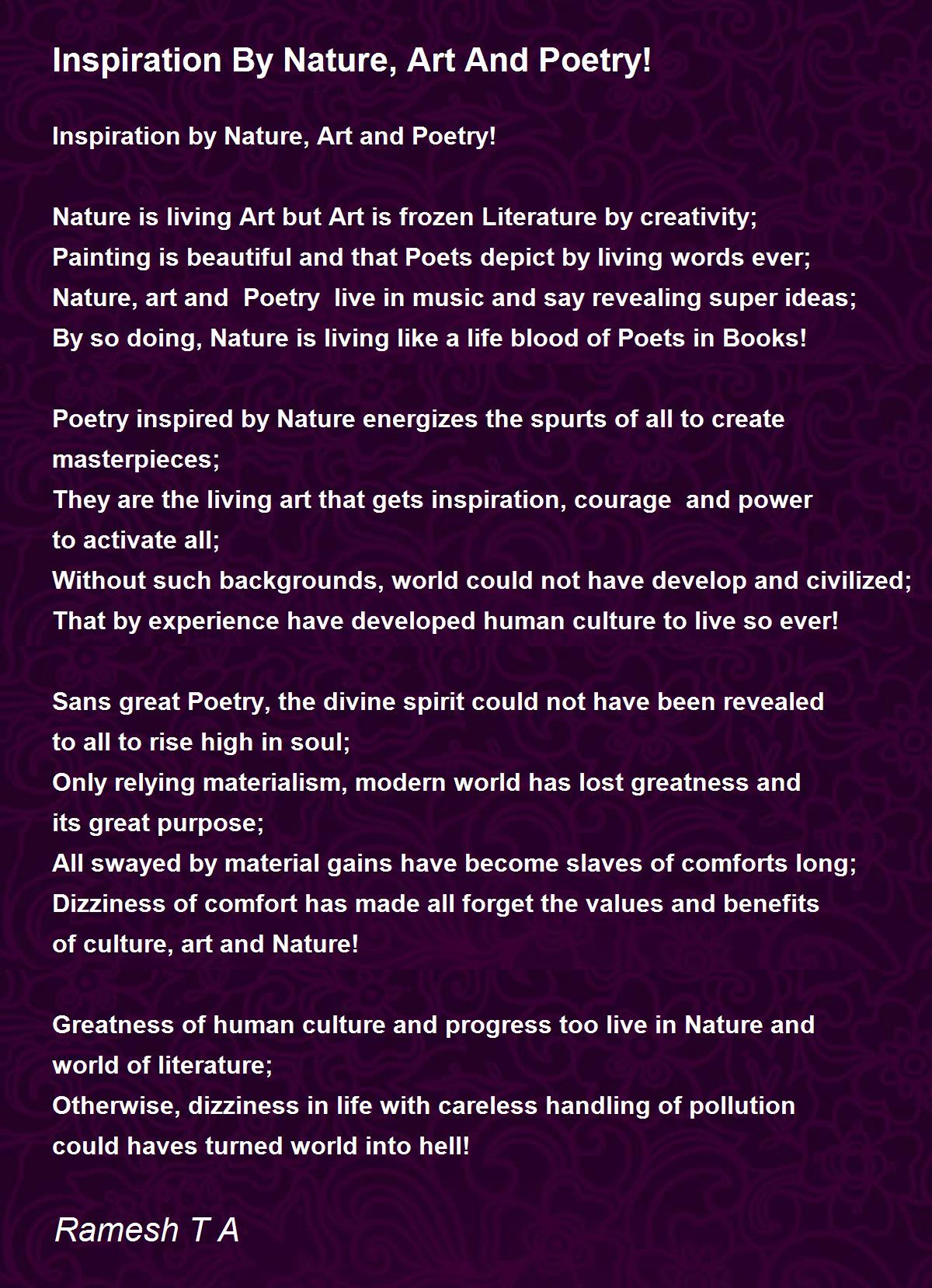 Poetry inspired by Nature energizes the spurts of all to create masterpieces;