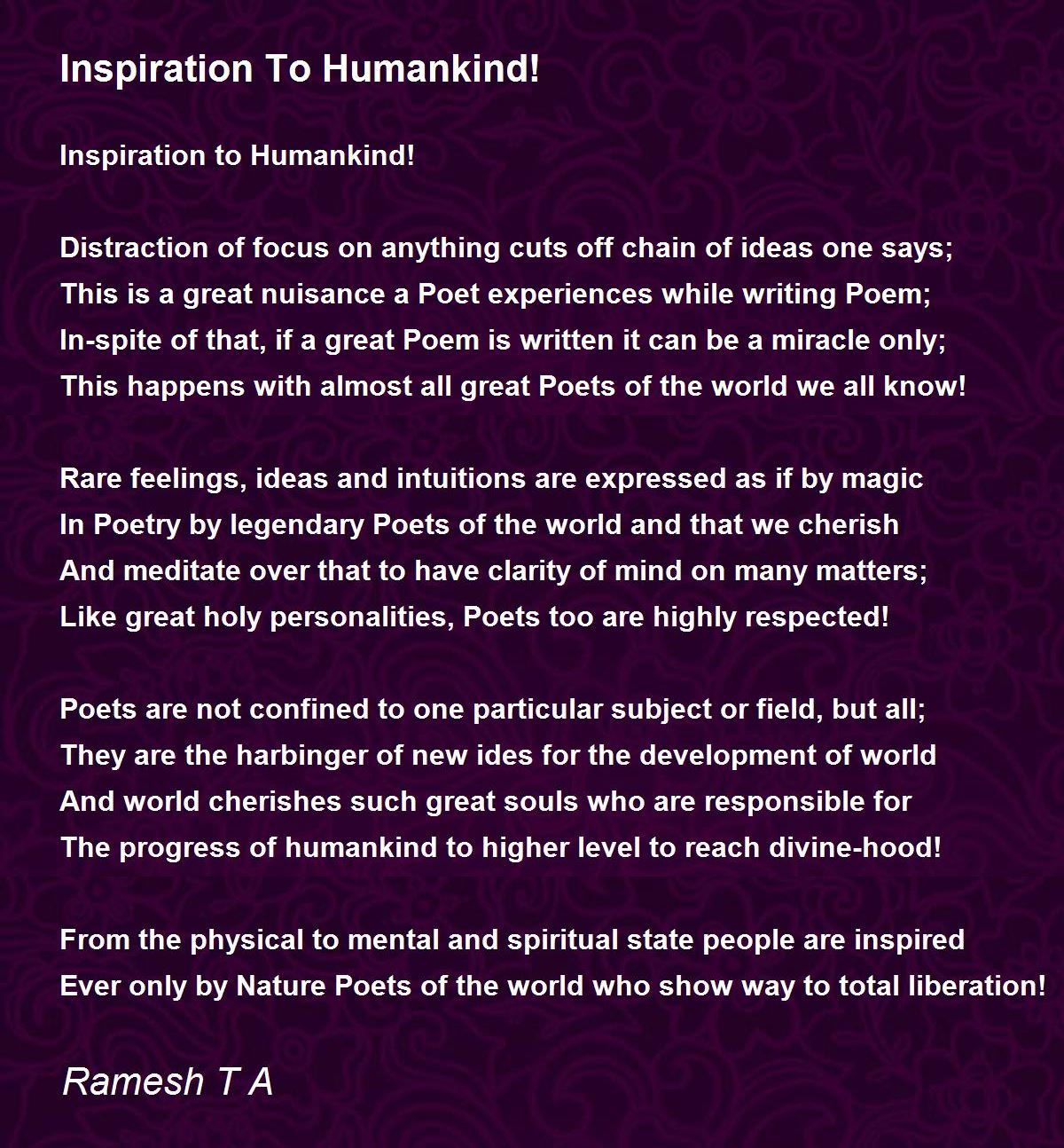 From the physical to mental and spiritual state people are inspired Ever only by Nature Poets of the world who show way to total liberation!