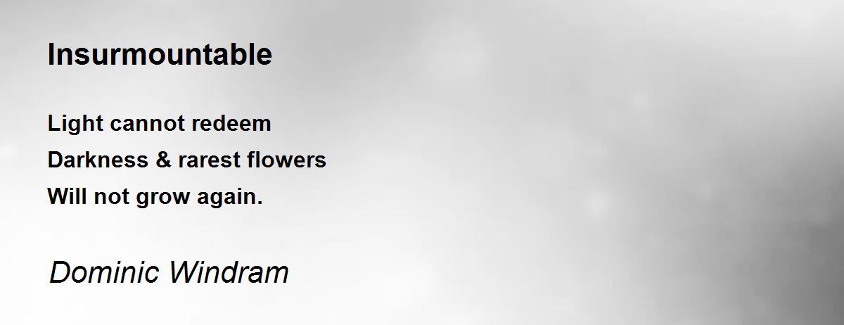 Light cannot redeem Darkness & rarest flowers Will not grow again.