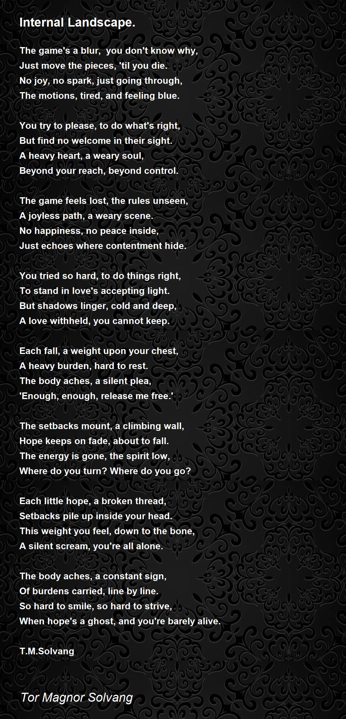 Each fall, a weight upon your chest,