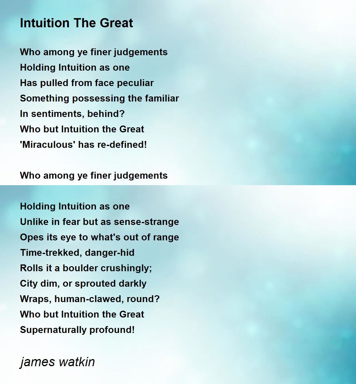 " Intuition the great miraculously redefined in this thought provoking piece. Thanks for sharing.10 points.
