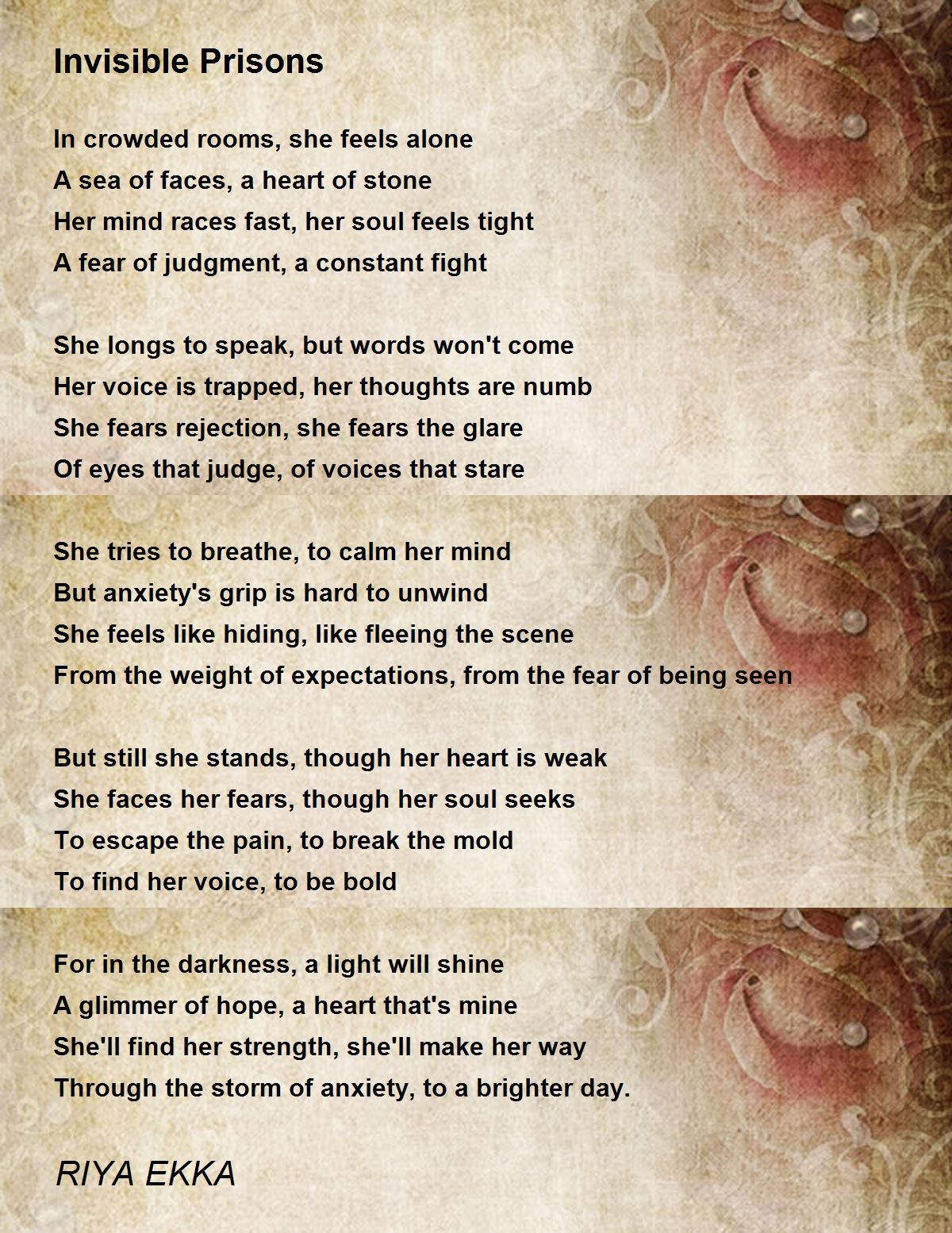 A poem pent up with emotion. ‘ she fears the glare Of eyes that judge, of voices that stare'.. you have painted her in so little words.. naturally, the poem has been selected Poem Of The Day. Congratulations, dear poet.