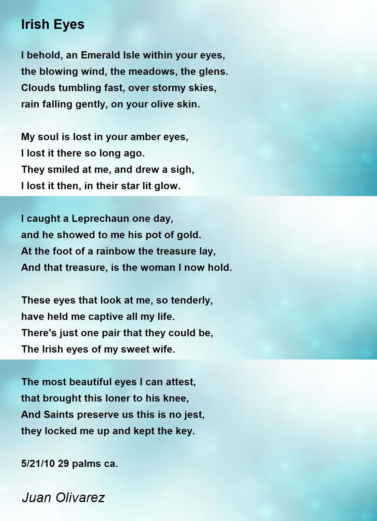I behold, an Emerald Isle within your eyes,