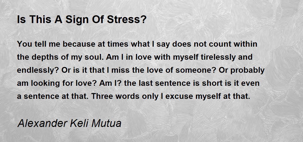 You tell me because at times what I say does not count within the depths of my soul. Am I in love with myself tirelessly and endlessly? Or is it that I miss the love of someone? Or probably am looking for love? Am I? the last sentence is short is it even a sentence at that. Three words only I excuse myself at that.