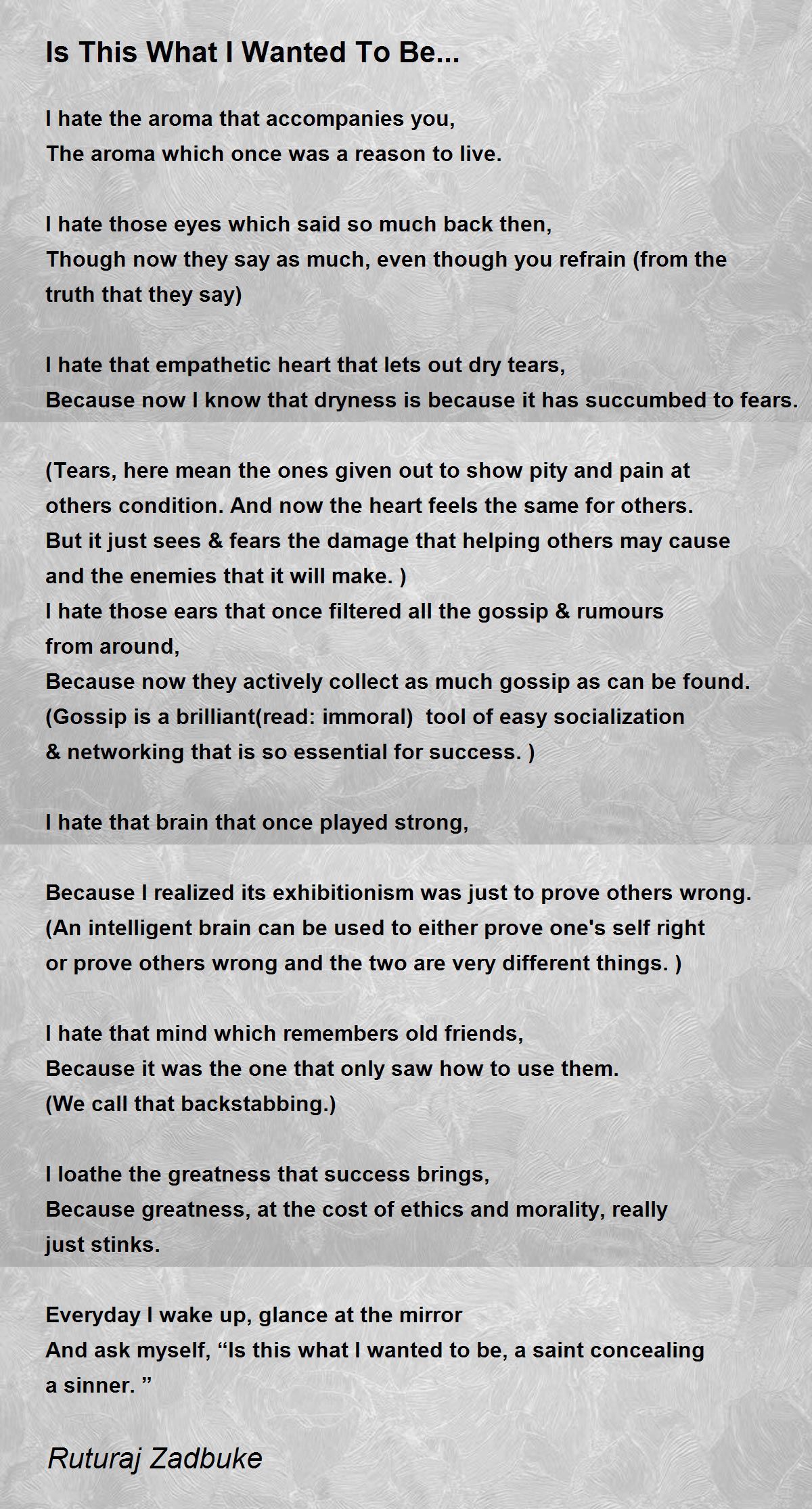 And ask myself, “Is this what I wanted to be, a saint concealing a sinner.”