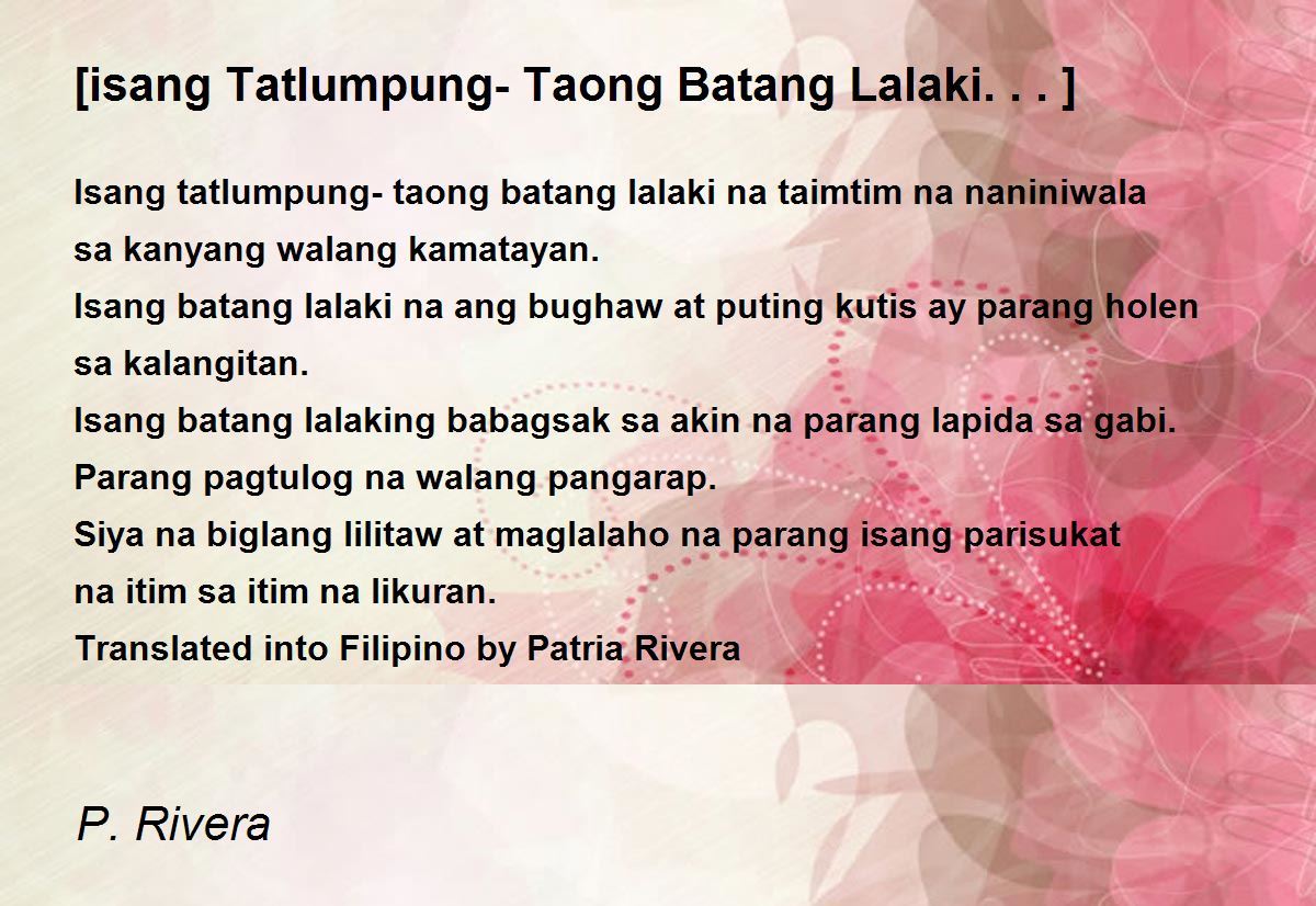 Isang batang lalaking babagsak sa akin na parang lapida sa gabi. Parang pagtulog na walang pangarap.