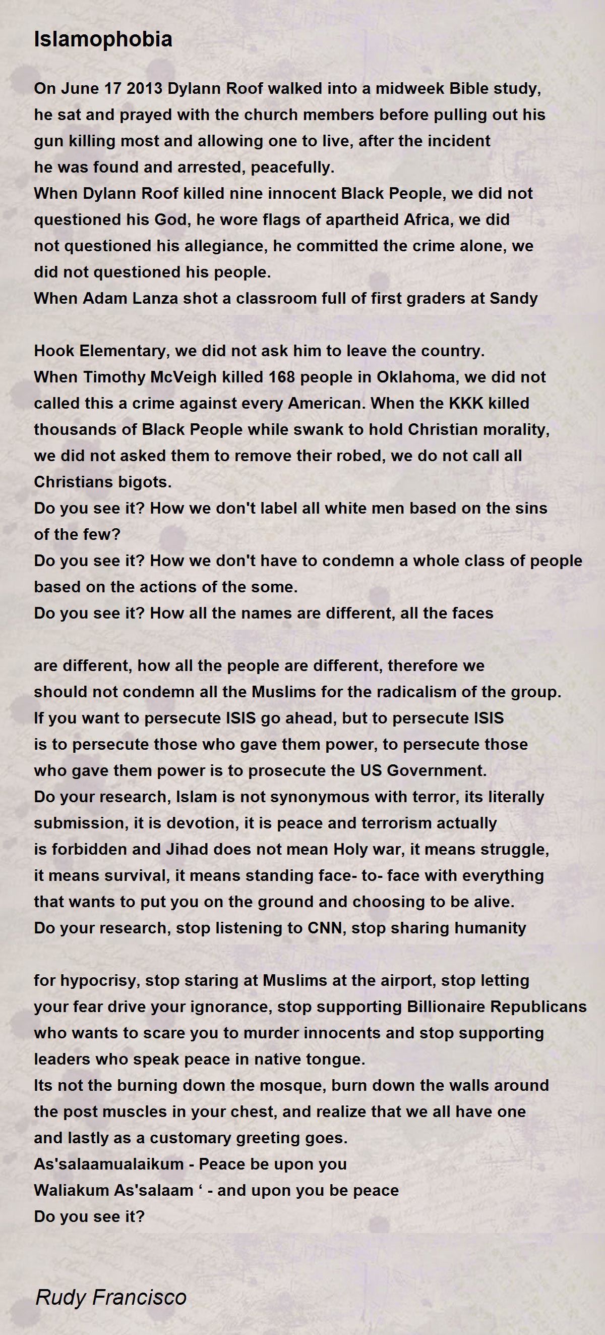 Do you see it? How we don't label all white men based on the sins of the few?