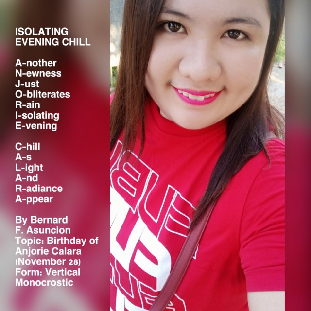 Topic: Birthday of Anjorie Calara (November 28)