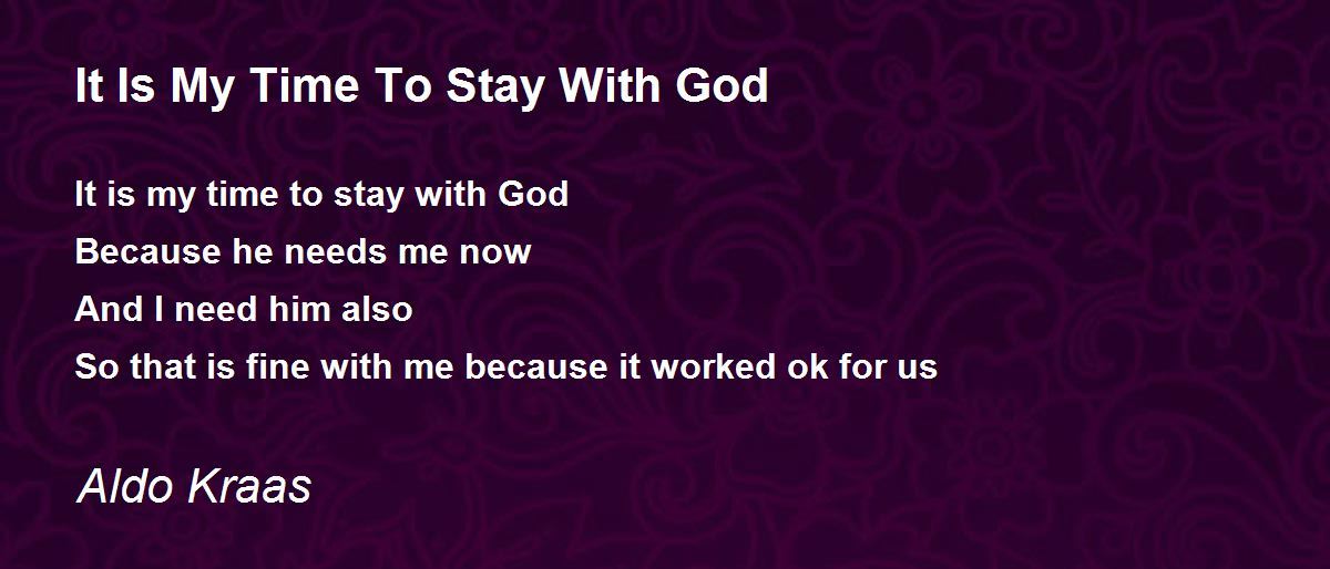 It is my time to stay with God Because he needs me now And I need him also So that is fine with me because it worked ok for us
