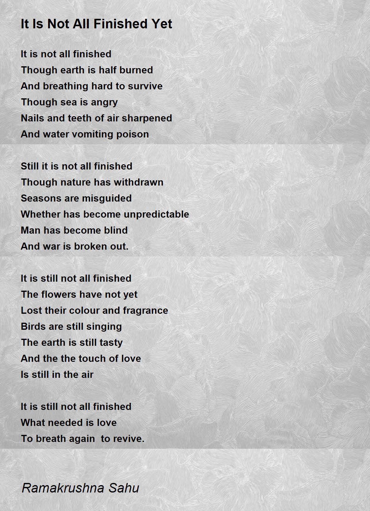 It is not all finished
