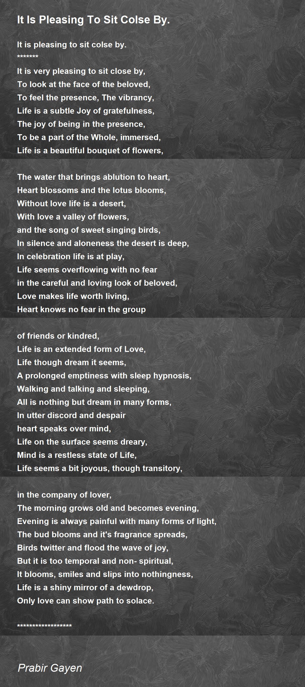 It is very pleasing to sit close by, To look at the face of the beloved, To feel the presence, The vibrancy