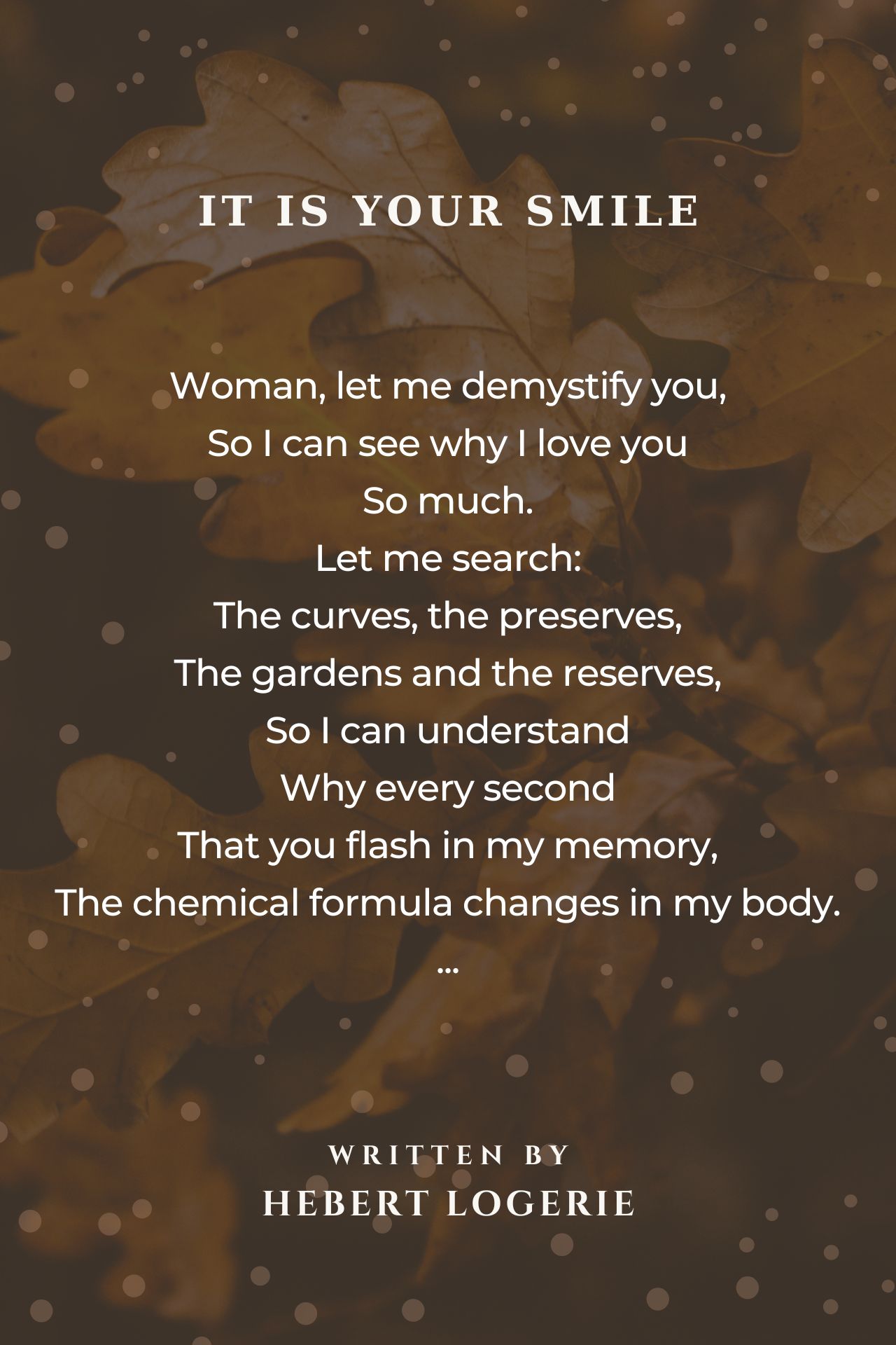 It is your smile That drives me crazy; It is your smile That makes me feel so good. Oh! My soul..../// beautiful love is expressed here// excellent