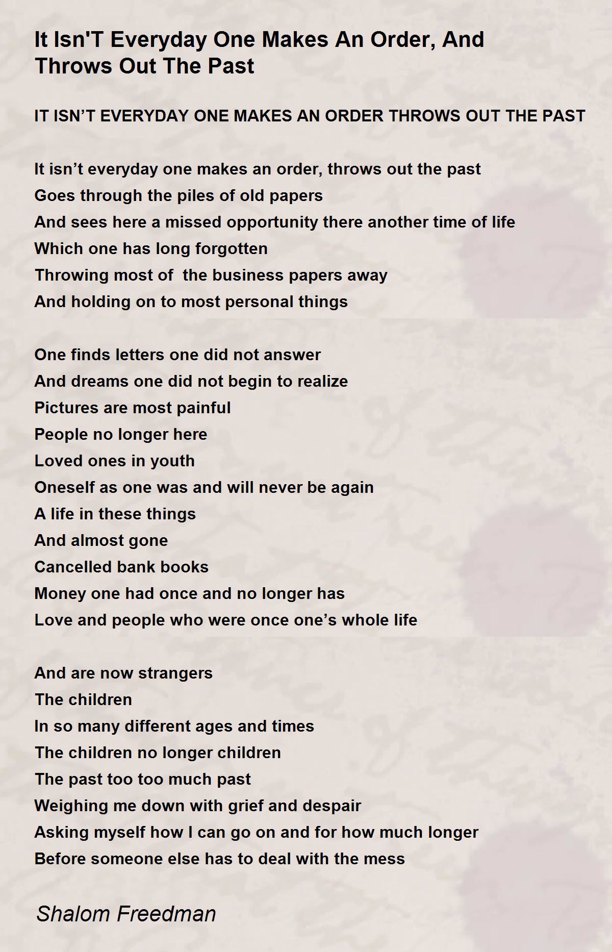 IT ISN’T EVERYDAY ONE MAKES AN ORDER THROWS OUT THE PAST