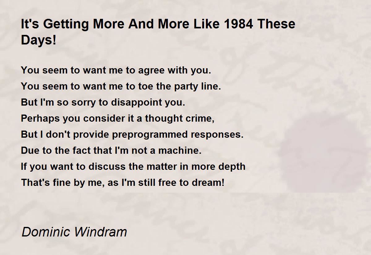 1984- in what relation? Sorry for my poor knowledge on history. Loved the poem because of its statements. 'If you want to discuss the matter in more depth That's fine by me, as I'm still free to dream! ' - That's a good spirit!