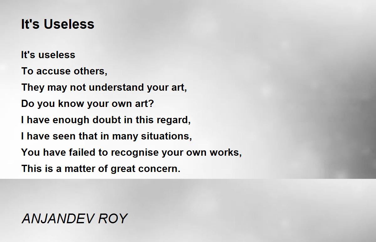 Do you know your own art? I have enough doubt in this regard, I have seen that in many situations, You have failed to recognise your own works, surely it i s a serious matter, in few words you express truths my dear Anjandev. thank u tony