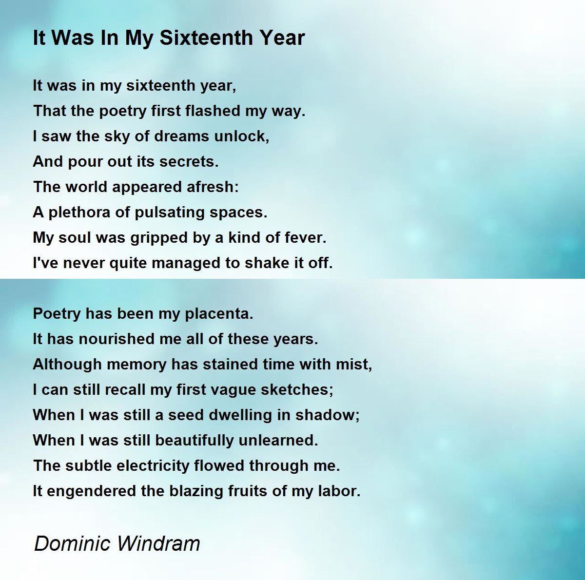 It was in my sixteenth year,
