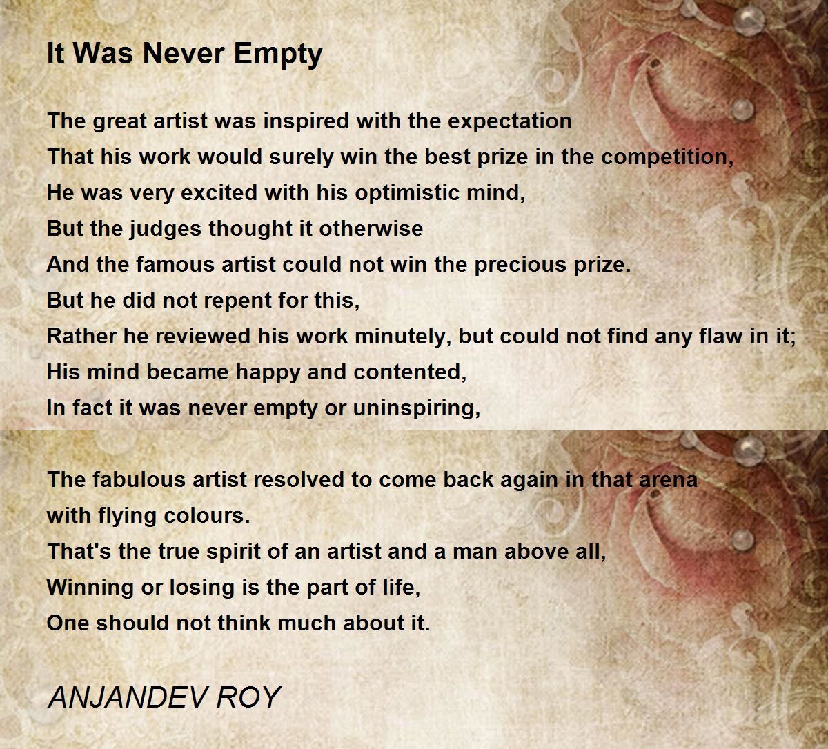 Artistic life is always inspired and this requires admiration and honour comes while prize is given. There may be winning of loosing but artistic works are nice. Amazing poem is shared....10