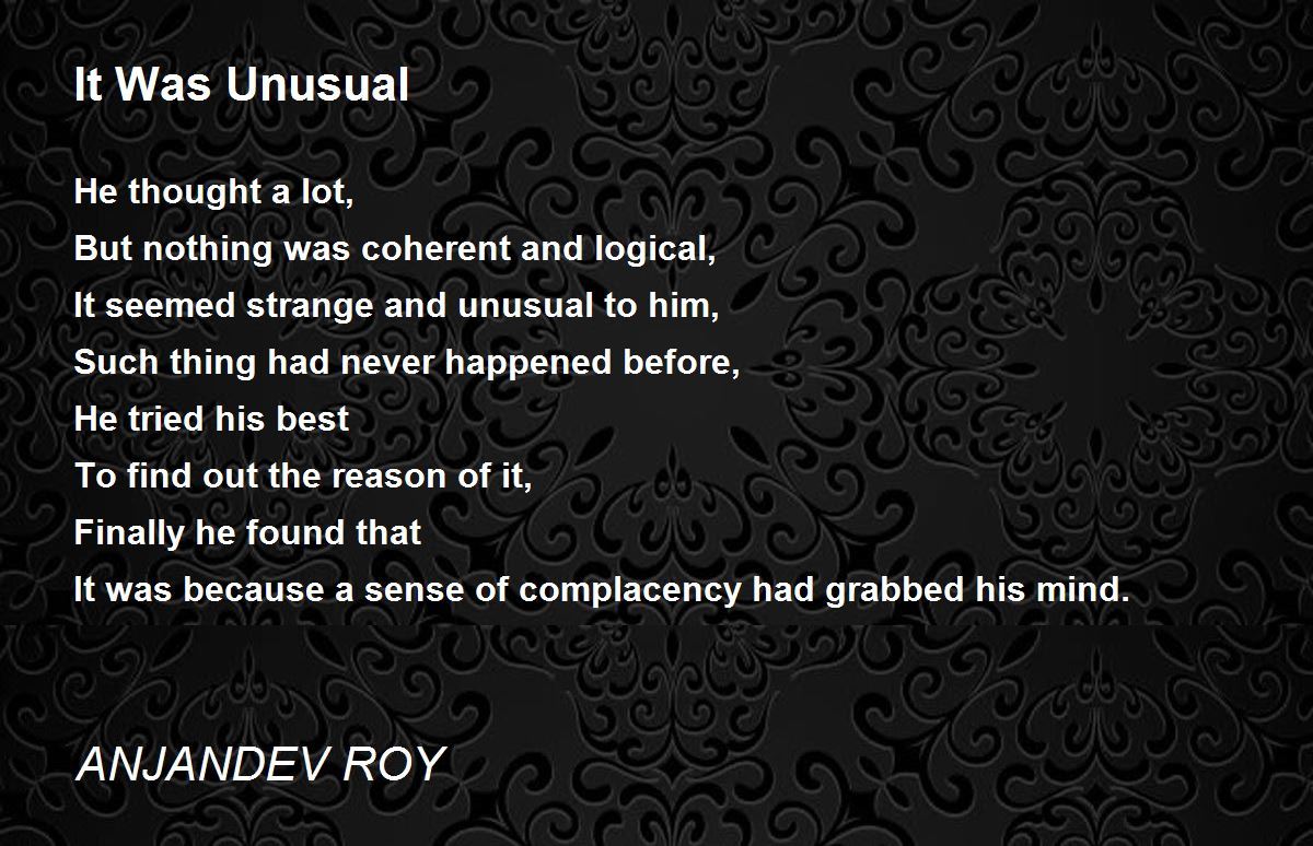 He thought a lot, But nothing was coherent and logical, ......... because a sense of complacency had grabbed his mind/// superb expression