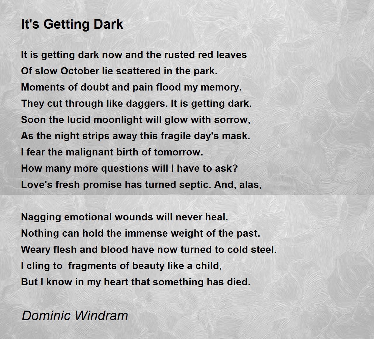 It is getting dark now and the rusted red leaves