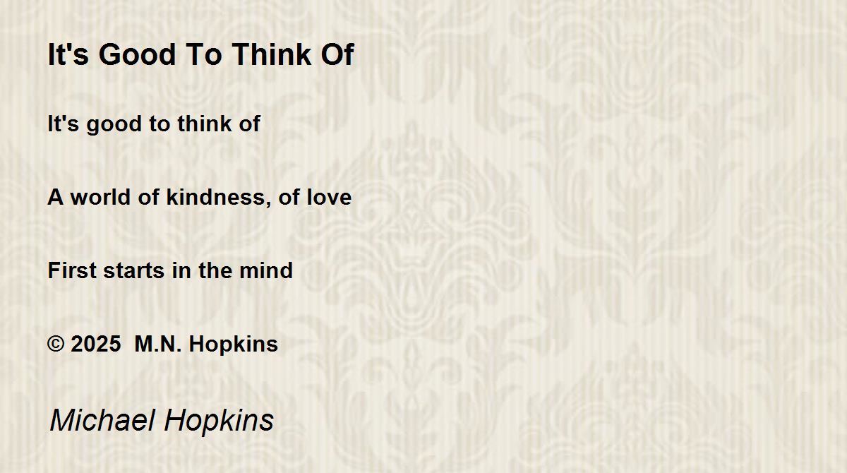 "It's good to think of A world of kindness, of love"
