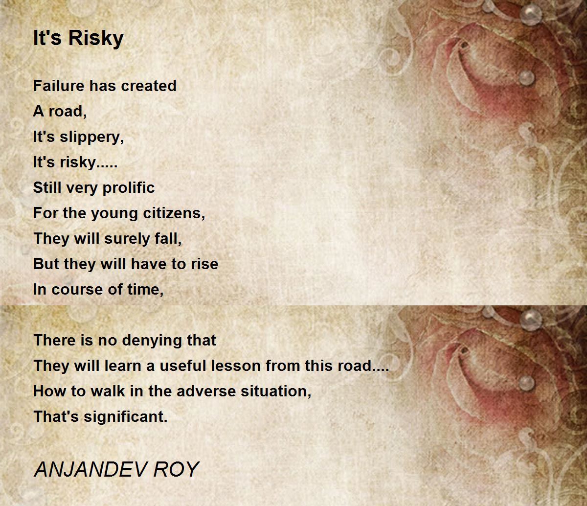 Falling is not the end of the road.Rising from a fall and learning is always a lesson.No risk, no gain.A beautiful poem.top marks.