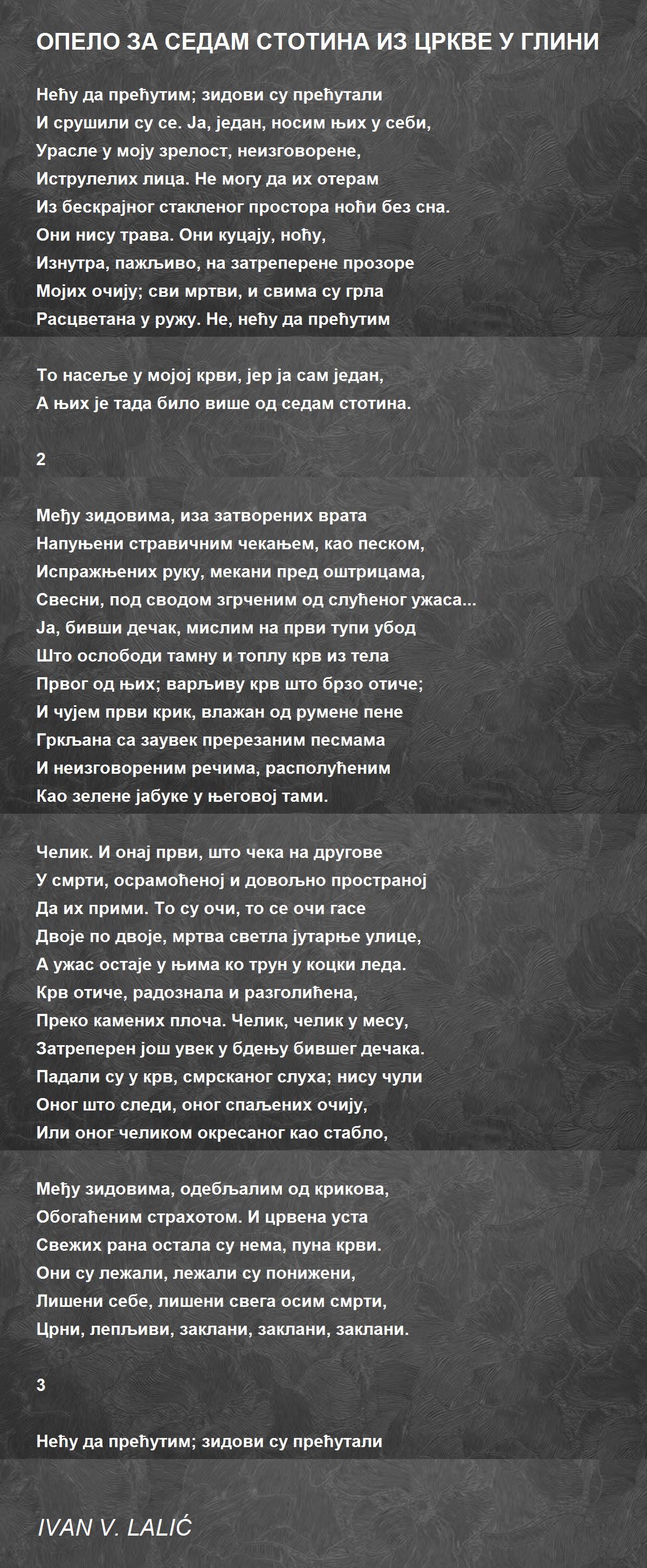 И срушили су се. Ја, један, носим њих у себи,
