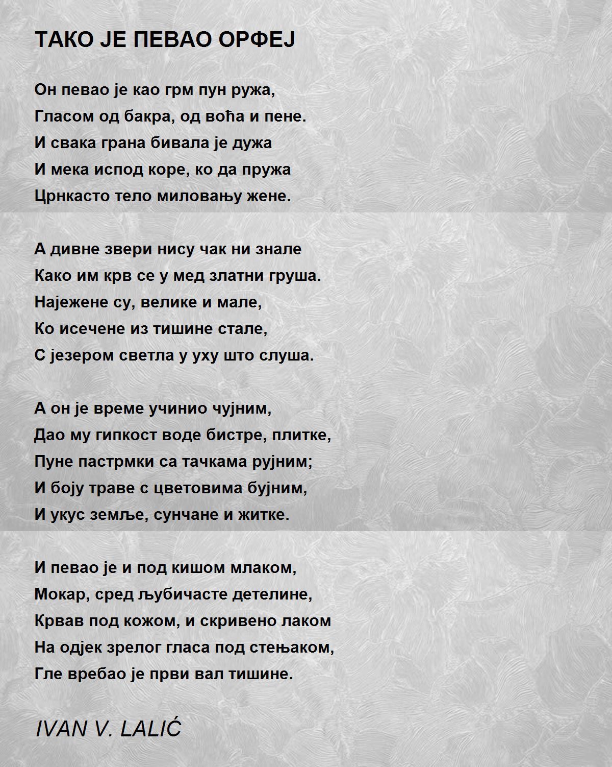 Он певао је као грм пун ружа,